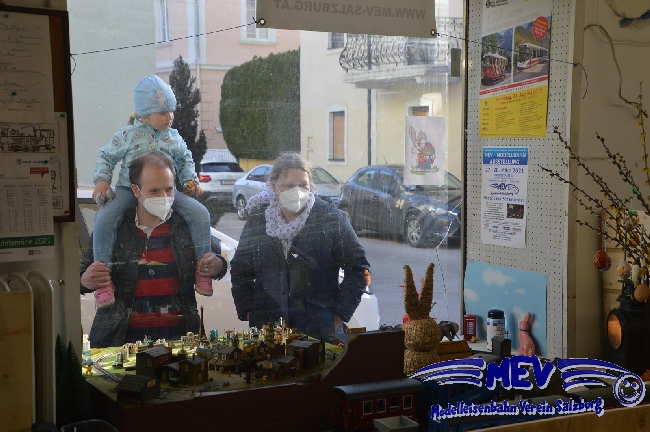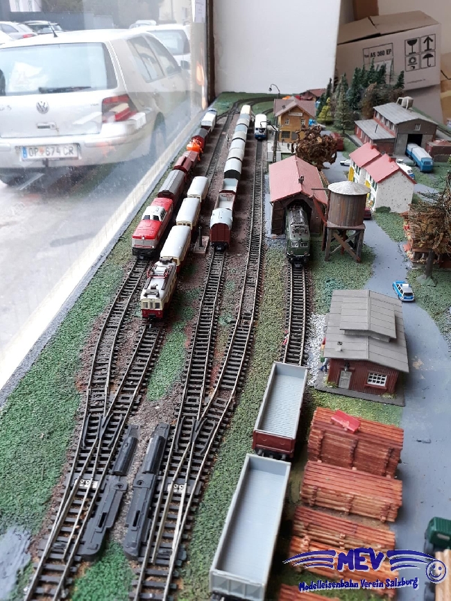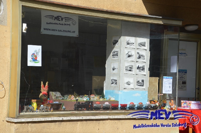3 große Schaufenster mit Modellbahnanlagen |
